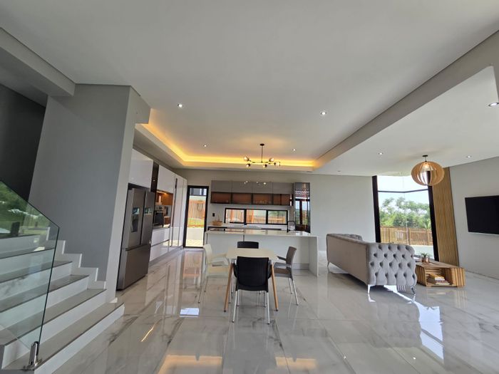 Resort-style family living in Palm Lakes Estate on the KZN North Coast, with open-plan entertaining, modern quartz kitchen and main-suite balcony overlooking the greenbelt — 3 beds, 3.5 baths.