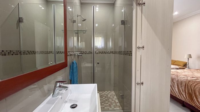 Relaxed family living in Palm Lakes Estate north of Ballito Central, close to schools and shops — private balcony with greenbelt and dam views. Four bedrooms, 3.5 baths, double garage.