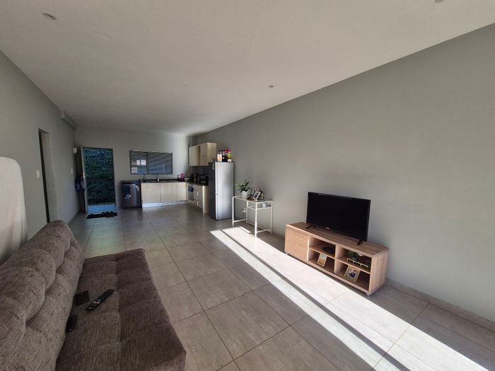 Unwind in Mount Michael’s secure, tranquil estate beside a gently flowing stream; enjoy a secluded garden deck, versatile flatlet and main-suite office — three beds, two baths, four covered parking.