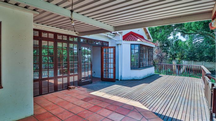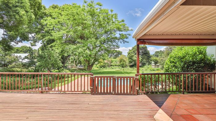 Riverside entertaining and relaxed family living on the Umgeni River, with extensive entertainment area and built-in braai, established flower garden, and four bedrooms, 2.5 baths.