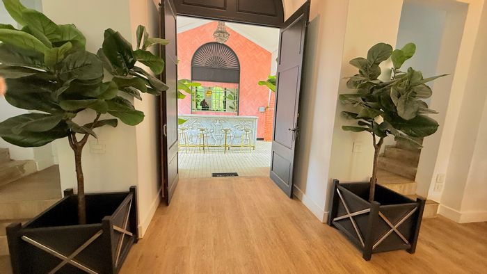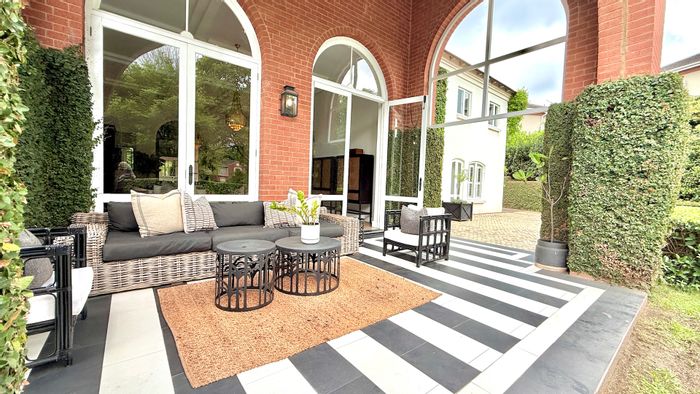 Resort-style living in sought-after Redlands Estate with seamless indoor-outdoor flow, private garden and pool, double-volume ceilings, and four bedrooms, each en-suite.