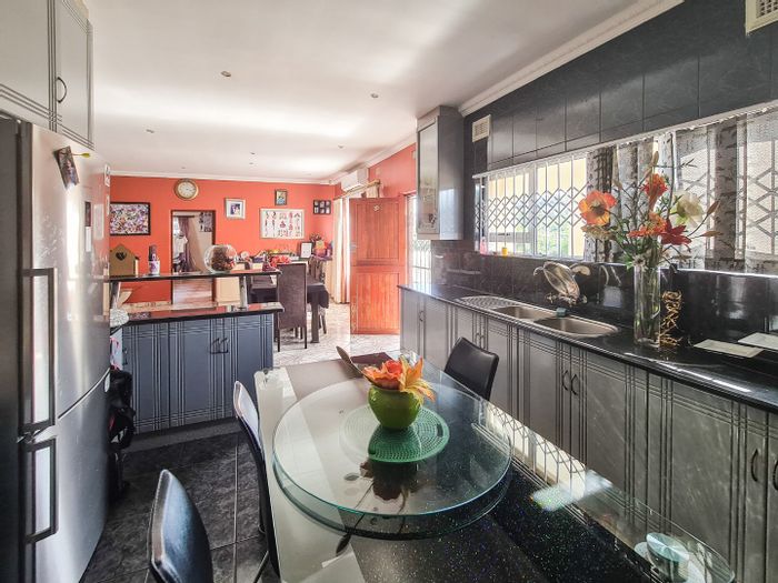 Coastal entertainer in Oslo Beach, minutes from Port Shepstone CBD and Shelly Beach; open-plan living with quartz kitchen flowing to covered courtyard and pool. Four beds, three baths, garage.