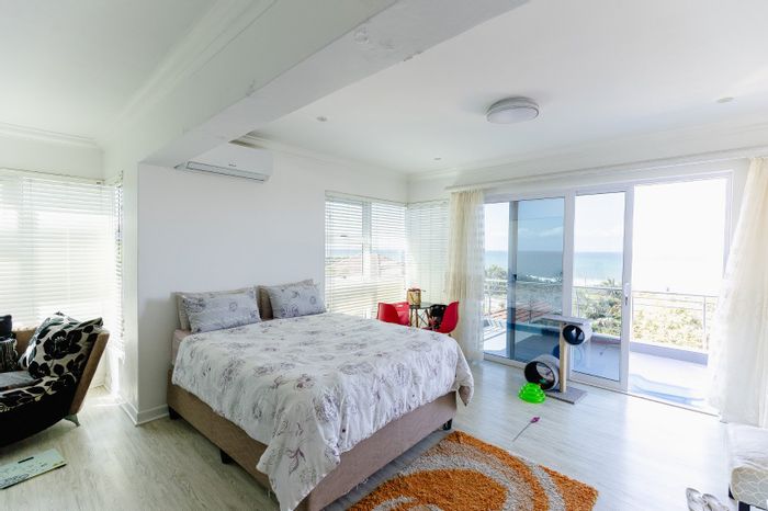Beachfront property with stunning views, spacious bedrooms, open kitchen, pool area, flatlet, and direct beach access. Ideal for relaxation.