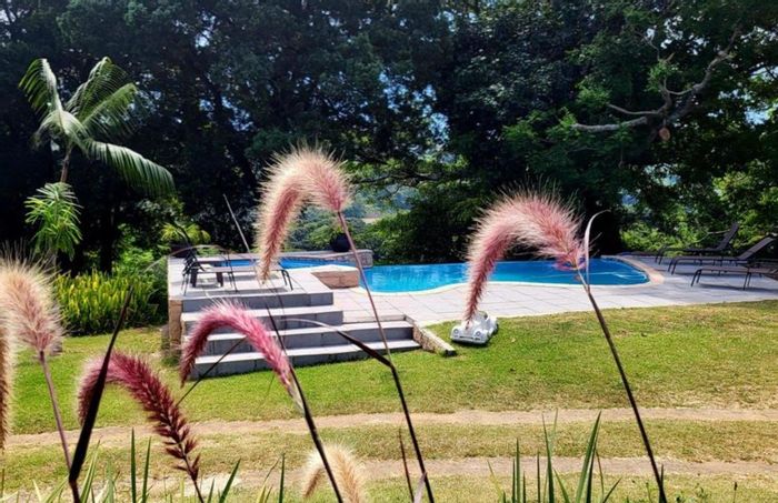 Relaxed coastal living in Umtentweni, with dam and pool-side entertainment area featuring a built-in braai and fishing access; manicured garden, three bedrooms, two baths.