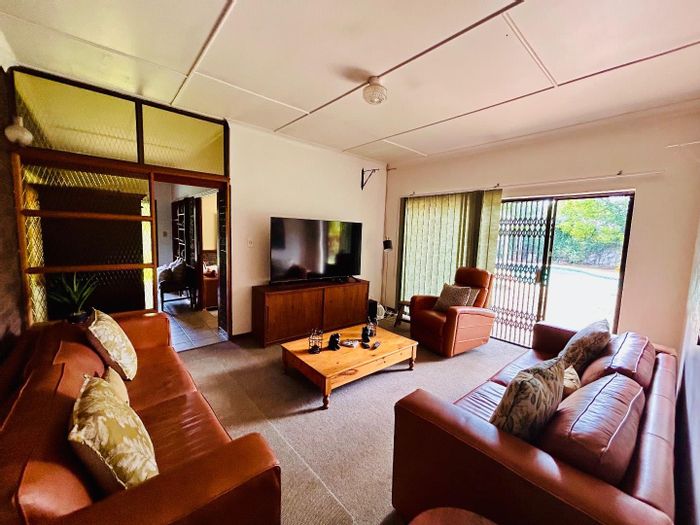 Entertainer's retreat near the golf course with a thatched verandah and built-in braai, generous living areas, four bedrooms and double automated garage.