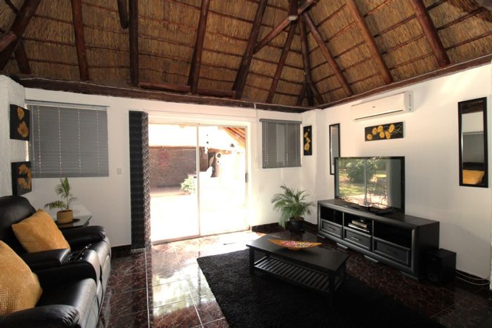 Relaxed small-town living on Bela Bela’s edge in a secure complex, with a thatched lapa for entertaining, private garden and covered verandah; three bedrooms, two bathrooms, tenant until 2026.