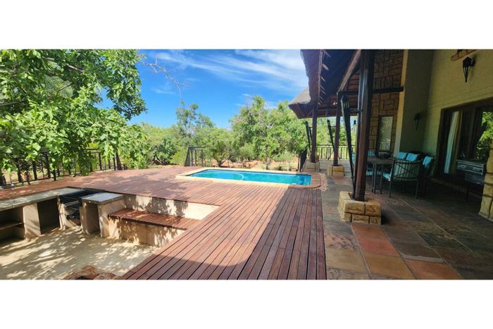 Bushveld retreat for wildlife lovers in the Waterberg Mountains, two hours from Johannesburg — private splash pool, solar-powered comforts and secure estate living; three bedrooms, two bathrooms, double garage.