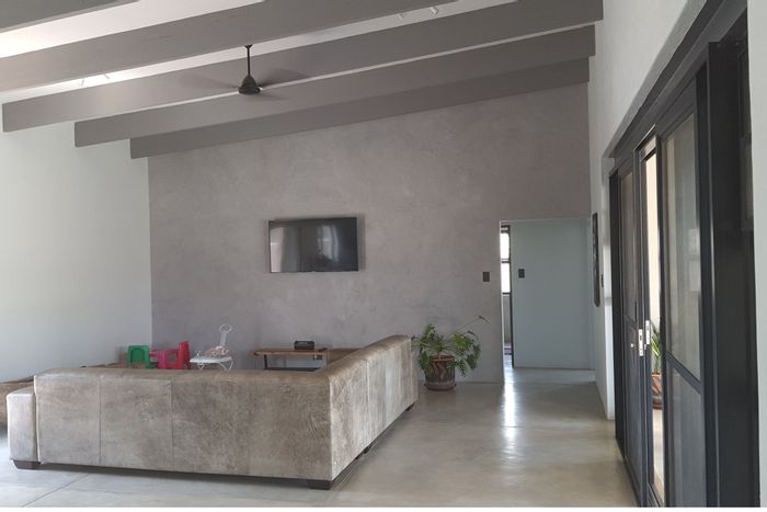 Live sustainably minutes from Hoedspruit town centre and nature reserves, with Drakensberg views and off-grid solar power; covered patio with built-in braai. Two bedrooms, two baths, single garage.