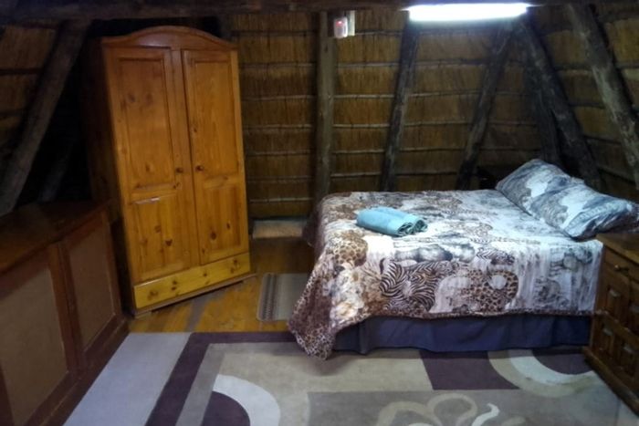 Secluded thatched retreat on a private 2400 m² stand with bush views, pool, braai and deck for wildlife watching; upstairs loft/TV lounge. Two en‑suite bedrooms, 5000L water.