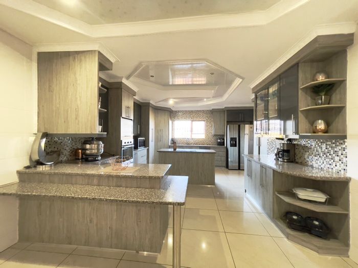 Entertainer's dream in Aerorand with open-plan living and a central indoor built-in braai, private patio off main suite, veggie garden, five beds, four baths and double garage.