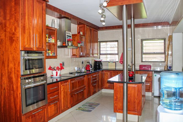 Entertainer's lifestyle in Roberts Estate, with open-plan flow to a deck and pool overlooking the dam and park; braai room, pajama lounge and four bedrooms with ensuites.