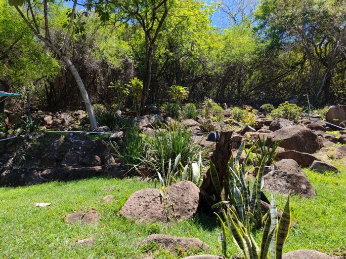Entertainer's home in the heart of West Acres, Mbombela — thatch-roof dining and built-in braai by a large rock pool, plus private air-conditioned granny flat. Four beds, three baths.