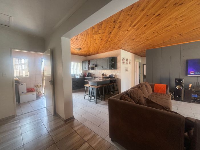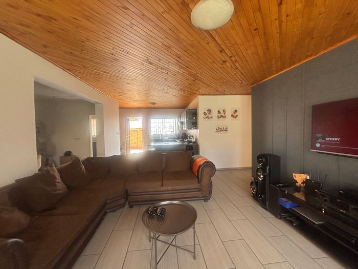 Family-focused living in a sought-after neighborhood with expansive garden and pool, covered patio braai and separate two-bedroom log cabin for guests. Four bedrooms, three bathrooms, five carports.