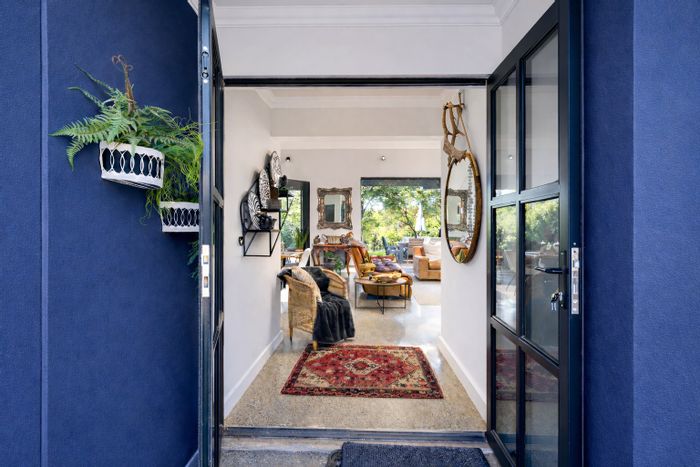 Seamless indoor-outdoor living in Landsmeer Estate, Hartbeespoort — enjoy a covered braai patio overlooking untouched bushveld that feels like an endless garden. Three beds, three baths, double garage.