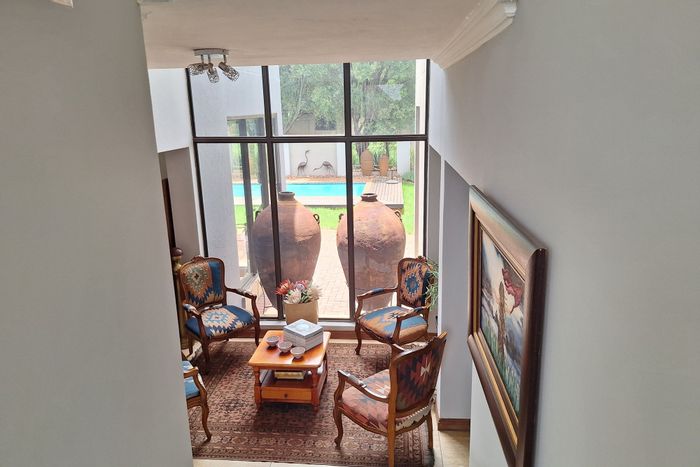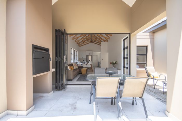 Entertain effortlessly in this greenbelt oasis with high ceilings, open-plan living and built-in braai patio leading to a pool and landscaped garden — four bedrooms, double garage.