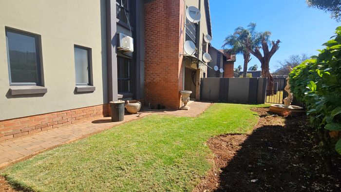 Easy single-storey living in Melodie, pet-friendly and steps from shopping and community amenities, with a private garden and built-in braai, communal pool/clubhouse, two bedrooms, two bathrooms, single garage.