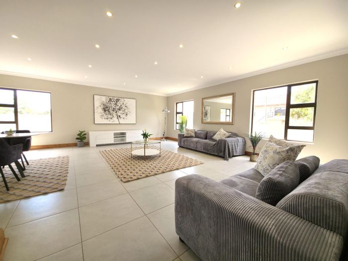 Relaxed estate living in Landsmeer, Meerhof — enjoy mountain views from a covered patio and a granite-finished kitchen with built-in braai; three bedrooms, two baths, double garage.