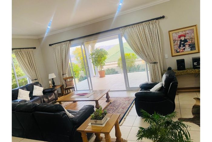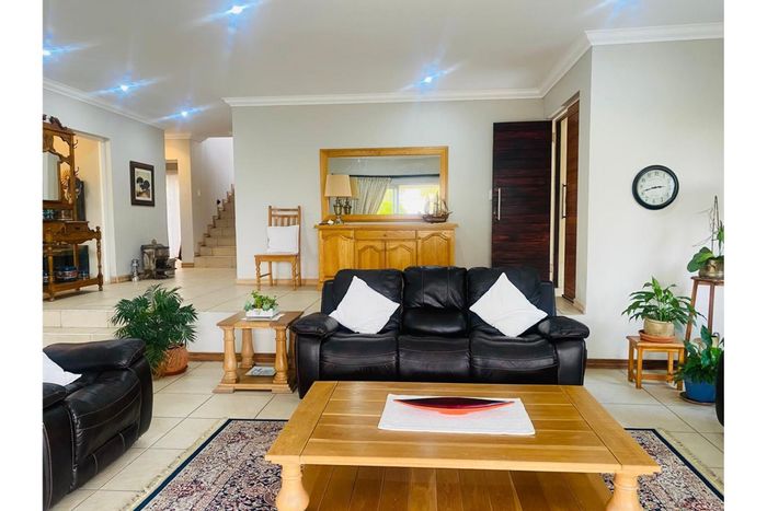 Entertainer’s retreat in Meerhof with Hartbeespoort Dam views, expansive stoop and built-in braai, separate flatlet and rock garden. Five beds, four baths, double garage.