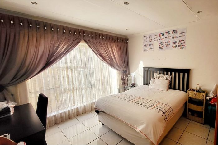 Entertainer's family retreat in Manzil Park, Klerksdorp, with generous gardens and a lapa for outdoor gatherings; modern open-plan living, five bedrooms and four en-suite bathrooms.