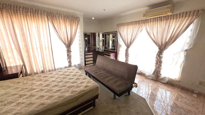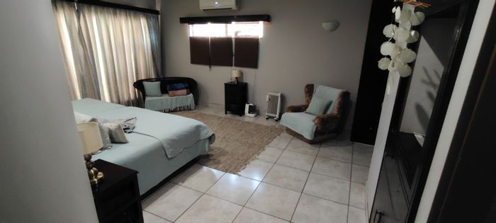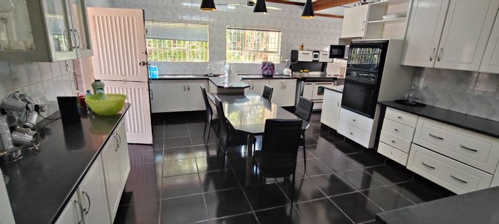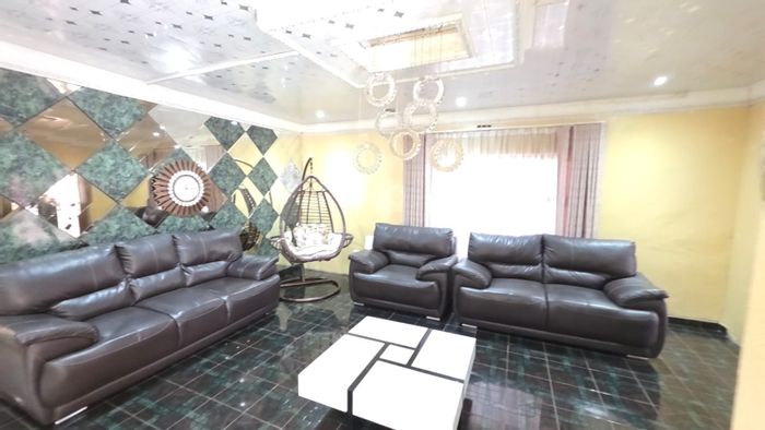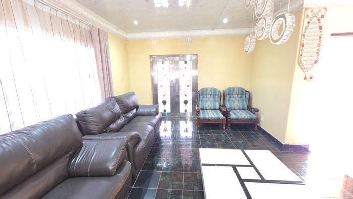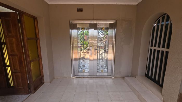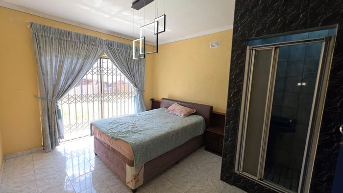 Spacious family living in Manzil Park, Klerksdorp with generous garden and entertaining lapa — modern architecture, secure perimeter, five ensuite bedrooms and triple-integrated garage.