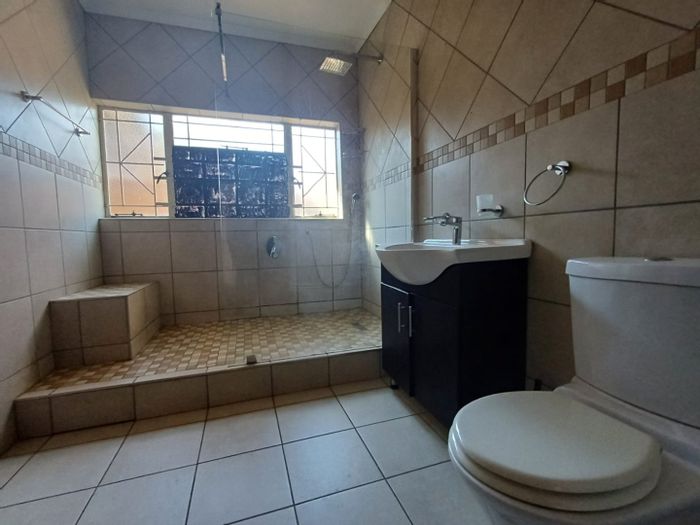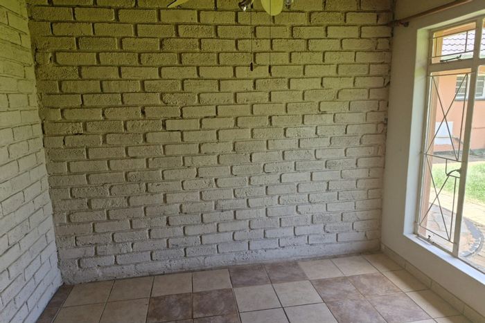 Sunlit family home in peaceful Meiringspark, Klerksdorp, boasting a modern kitchen and master en-suite with ample closets; close to shops and schools. 4 beds, 2 baths.