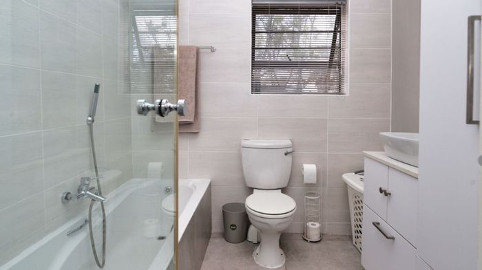 Renovated family home in a quiet, family-friendly neighborhood, featuring a Caesarstone island kitchen, open-plan living with air-conditioning, private garden and braai; three beds, two baths, double garage.