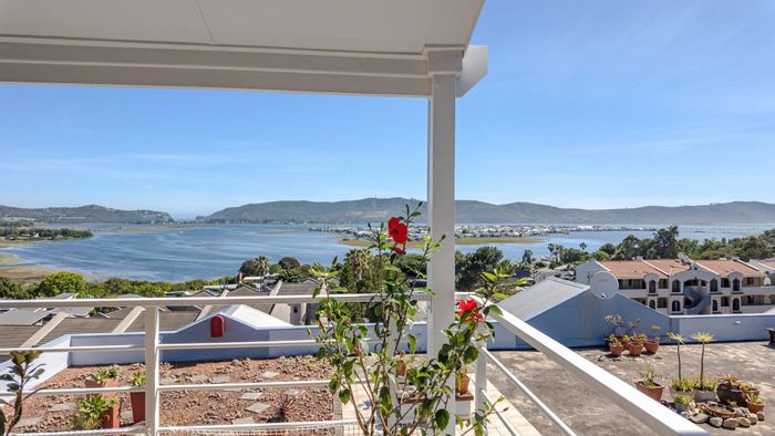 Penthouse living with uninterrupted lagoon-to-Heads views from a corner apartment in Knysna’s eastern suburbs, covered balcony for entertaining, four bedrooms, three bathrooms and automated lock-up garage.