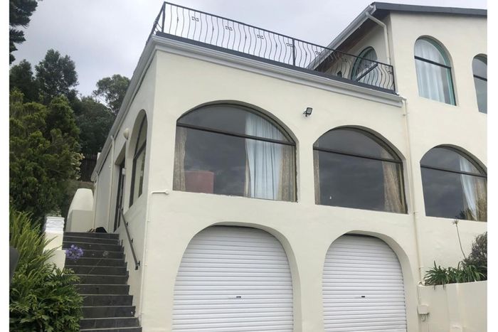Entertainer's home in Upper Old Place, Knysna with expansive deck and balcony framing the Knysna Lagoon and Heads, solar power and large garden — four bedrooms, two-and-a-half bathrooms, double garage.