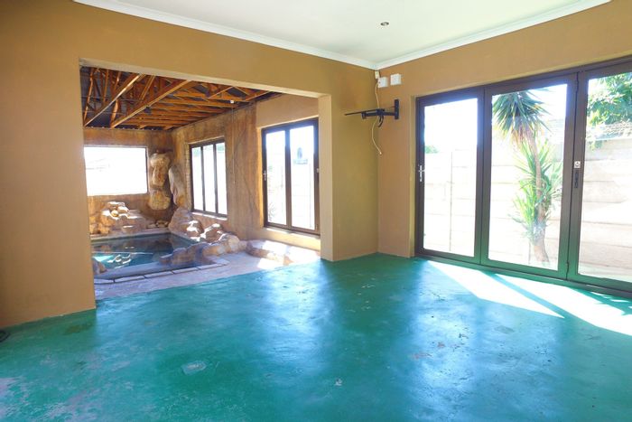 Family-friendly living in Old Rouxville, Kuilsriver — quiet street near schools and shops. Indoor solar-heated pool with massive entertainment lounge and double garage; three bedrooms, three baths.