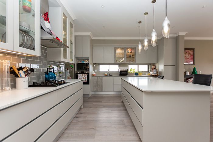 Lagoon-side living adjacent to a tranquil greenbelt, perfect for entertaining and remote work. Features a spacious modern kitchen with huge pantry, separate flatlet, five bedrooms.