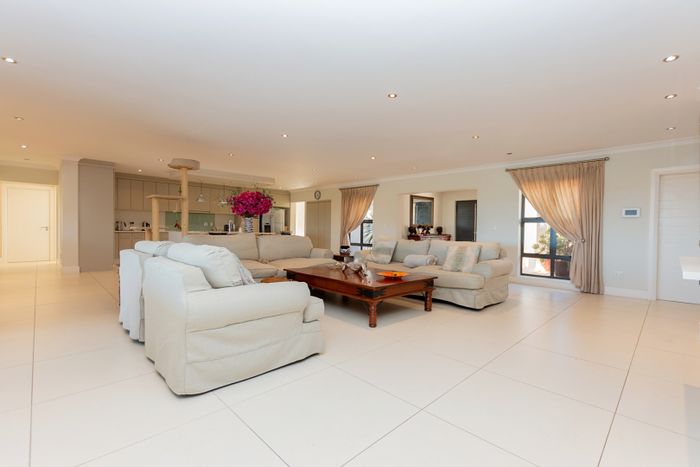 Resort-style living and effortless entertaining in Langebaan Country Estate, overlooking fairway and lagoon; enclosed garden with pool, designer kitchen, and three-bed, 3.5-bath home with triple covered parking.