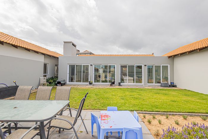 Resort-style living in Langebaan Country Estate — built-in braai and pizza oven, private pool, Gary Player golf and tennis access; pet-friendly family home with four bedrooms, 3.5 baths.
