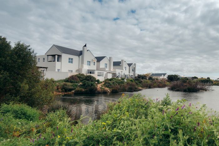 Coastal living and privacy in Langebaan, set on a pan-handle plot beside a lush greenbelt. Enjoy second-floor lagoon views, indoor and outdoor braai, and double garage. Three bedrooms, three baths.