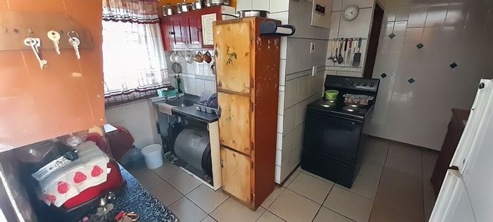Family entertainer in Portlands, Mitchells Plain, a minute from Hazeldean Street and amenities. Sleek black-and-white kitchen with breakfast nook, lounge with patio, secured parking; three bedrooms, one bathroom.