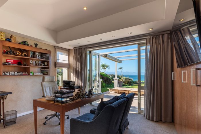 Escape to a private Keurboomstrand beachfront sanctuary in Plettenberg Bay — entertain on ocean-view decks, enjoy direct beach access and a heated indoor pool; eight bedrooms, seven bathrooms.