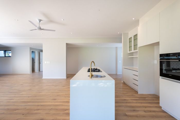 Water-access lifestyle in Twin Rivers Estate — private river access, clubhouse with pool and tennis, refined Caesarstone kitchen, and three ensuite bedrooms with double covered parking.