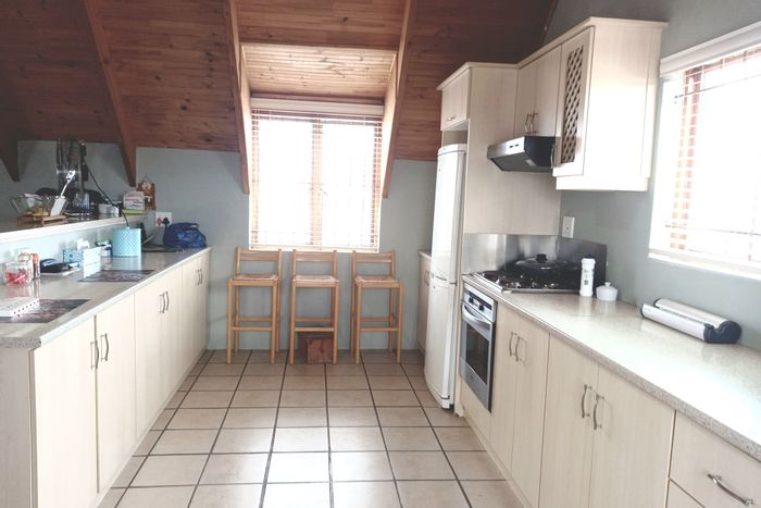 Relaxed coastal living in Jacobsbaai, steps from the beach and shoreline walks; expansive viewing deck with built-in braai, loft entertainment room, plus flatlet, 4 beds, 3 baths.