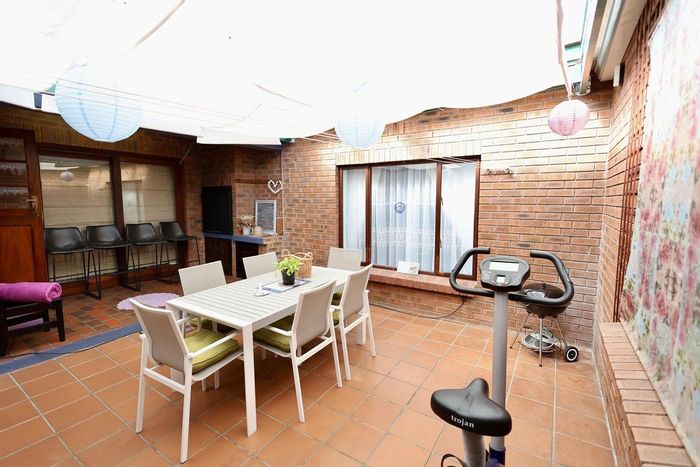 Coastal, low-maintenance living in Welgedaan Estate, Saldanha — indoor-outdoor flow to a sunlit patio with built-in braai and communal garden; two bedrooms, two baths, double garage.