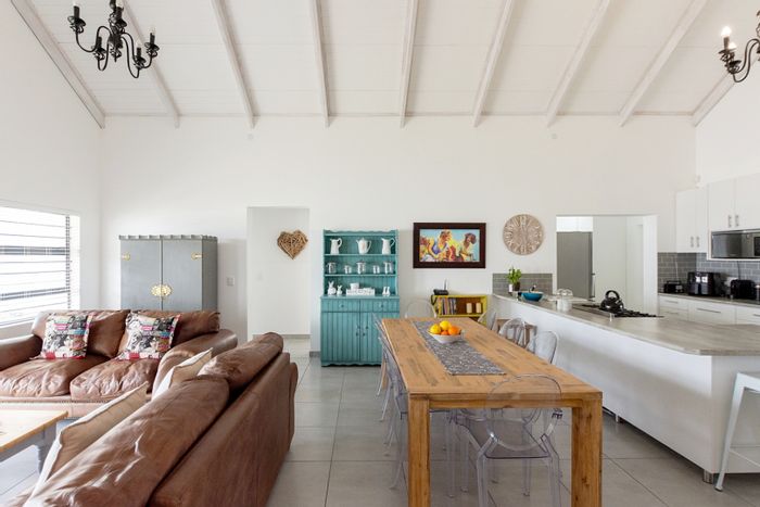 Coastal living steps from the Golden Mile in Britannia Bay — relaxed West Coast charm with an open-plan layout, stylish kitchen and patio with built-in braai; three bedrooms, two baths.