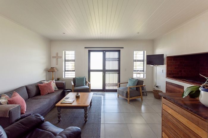 Coastal retreat in Britannia Beach Estate, St Helena Bay — easy low-maintenance seaside living with indoor braai, exposed beams, modern island kitchen; two bedrooms, two bathrooms, automated double garage.