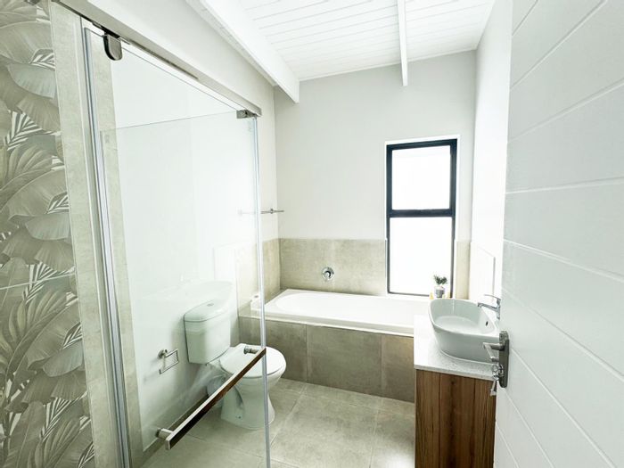Enjoy relaxed West Coast life in Britannia Bay, with light-filled open-plan living and indoor braai for entertaining, modern finishes and an automated double garage — three bedrooms, two baths.