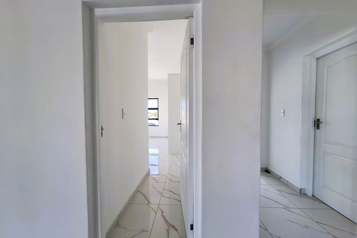 Shelley Point coastal retreat offering relaxed West Coast living — Caesarstone kitchen, paved patio with built-in braai, tiled bedrooms and double garage; 3 beds, 2 baths.