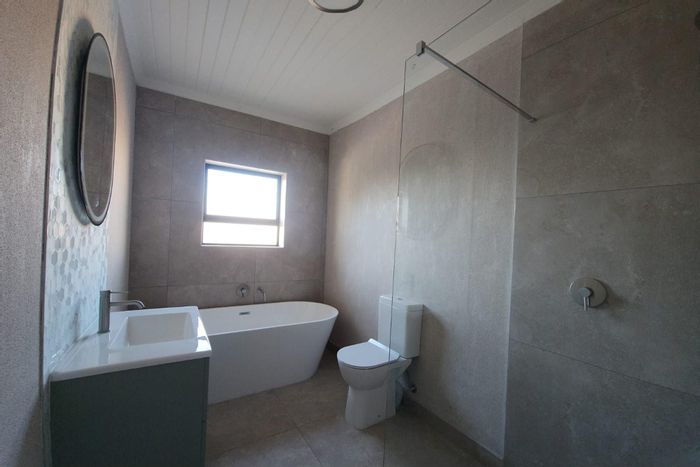 Relaxed West Coast living with Shelley Point fairway views and beach access; open-plan interiors flow to a covered patio with built‑in braai and pergola. Three bedrooms, two baths.