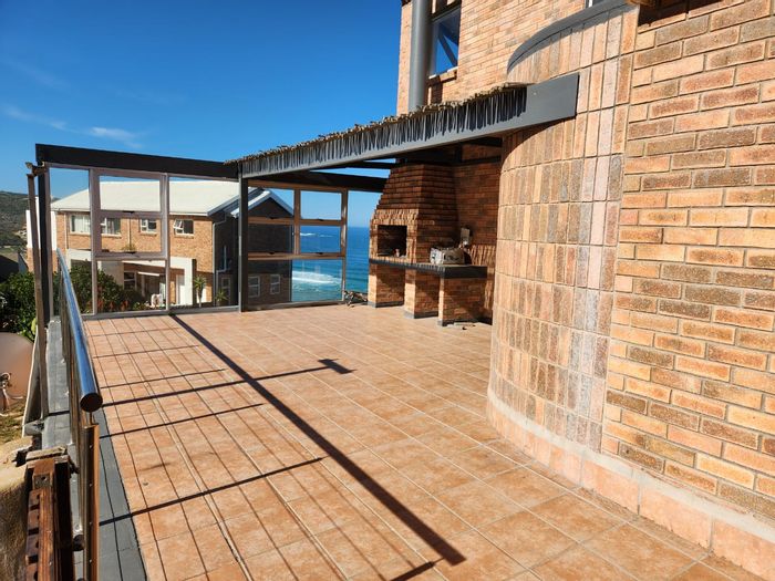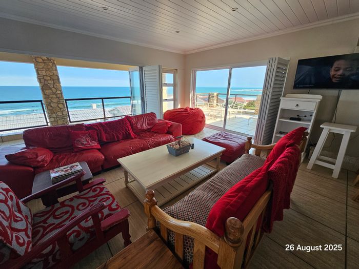 Seaside retreat in quaint Jongensfontein with seamless indoor‑outdoor living and sweeping sea views; two living areas, en‑suite bedrooms, modern kitchen and low‑maintenance garden. Three beds, four baths, double garage.