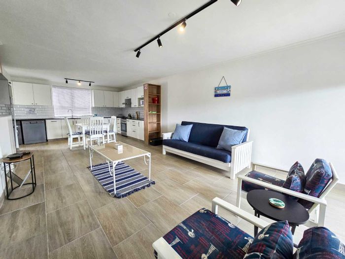 Coastal family haven in Stilbaai with sunlit open-plan living, separate self-contained flatlet for guests or rental, generous master suite with walk-in closet, and double automated garage.