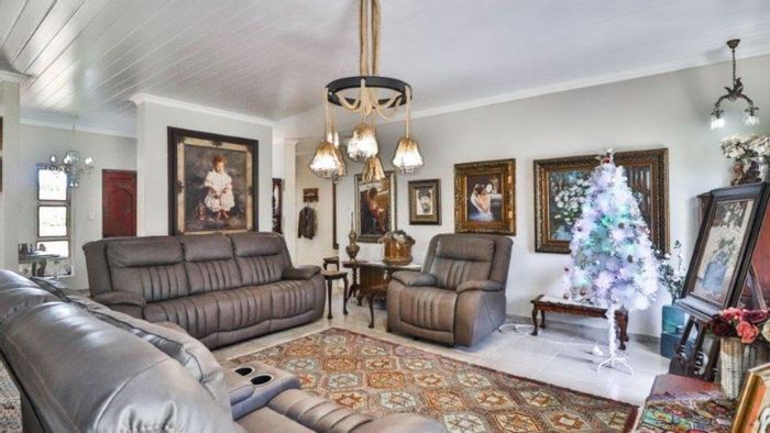 Versatile family living in peaceful Stilbaai with separate entrances for dual kitchens and a bachelor unit, fitted stair lift and well-kept garden; five bedrooms, five bathrooms and single garage.
