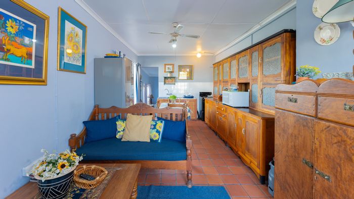 Coastal living steps from Struisbaai beach in Langevlei Village, with communal amenities and an outdoor terrace with built-in braai; own-title two-bedroom, one-bath home with single garage.