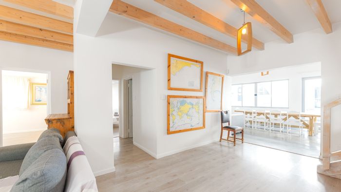 Coastal living on Struisbaai’s main street, moments from the 14 km beach and maritime charms; top-floor apartment with expansive sea views, three beds and three baths.