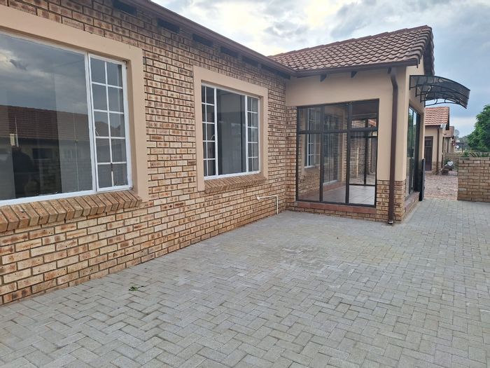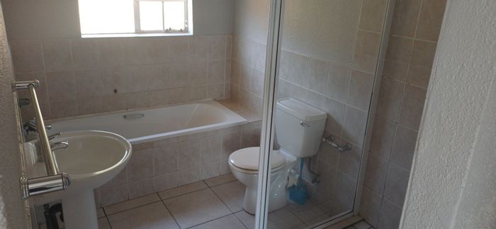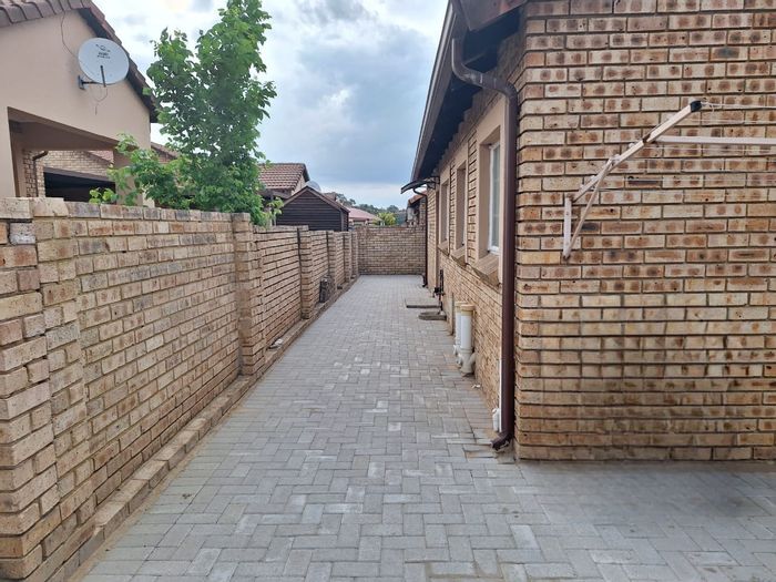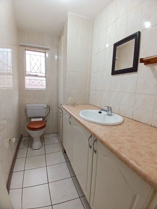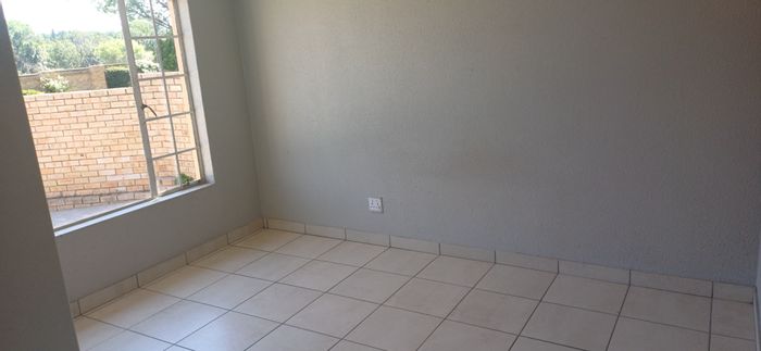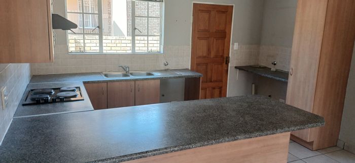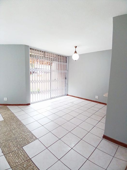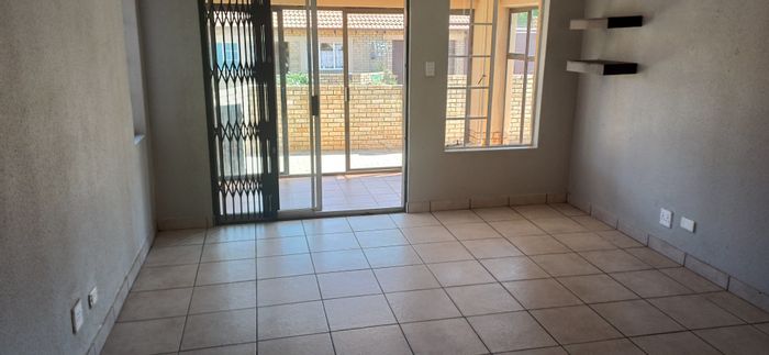 Effortless urban living in a popular complex central to shops — open-plan kitchen/living flowing to a private yard and closed stoep; two bedrooms, two baths and garage with electric motor.