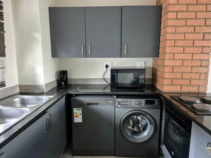 Relaxed suburban living in Crowthorne, Midrand — walk to cafes, parks and highways. Modern kitchen and communal pool; one-bedroom, one-bath with two covered parking.